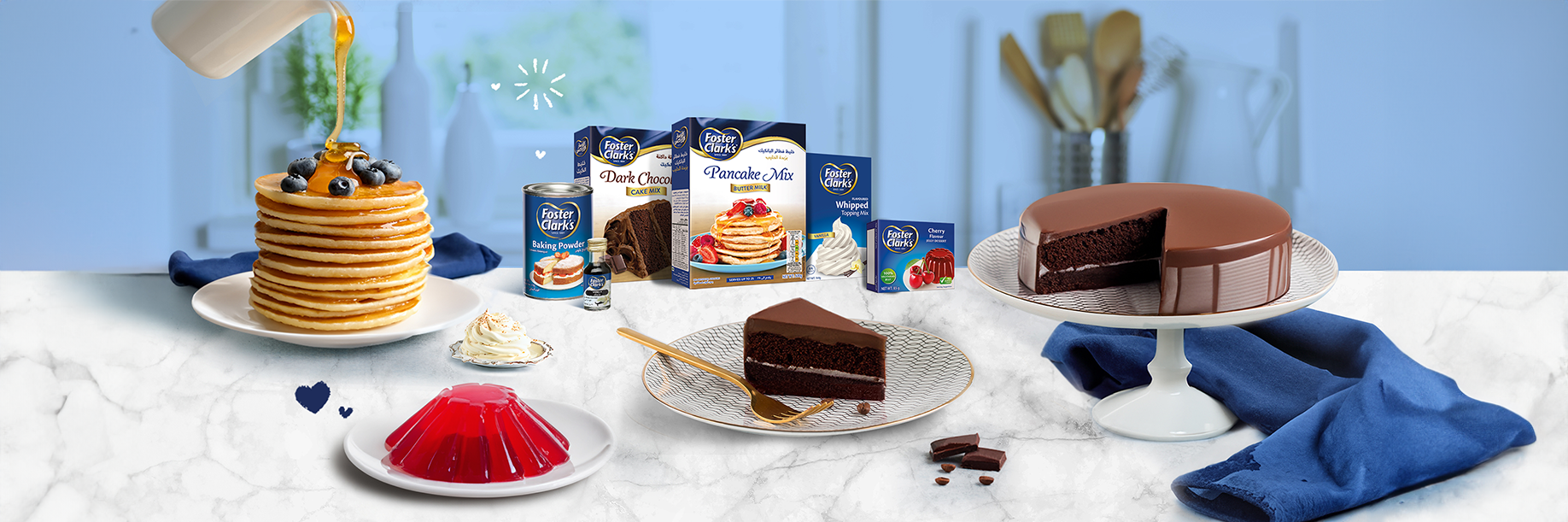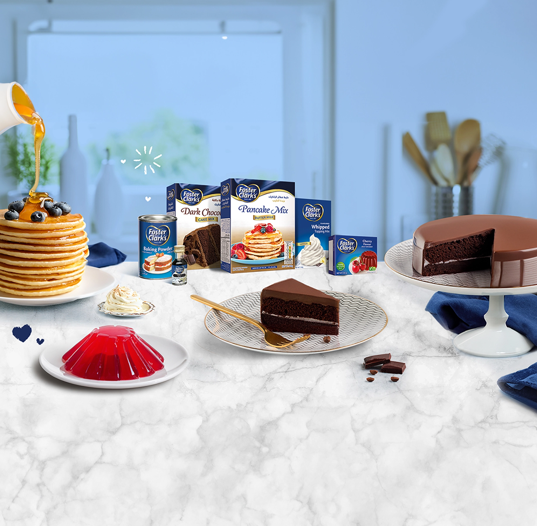The Taste Of Home Welcome to the official Foster Clark’s recipe website! Home to the most delicious dessert recipes, tips & tricks, and everything baking.Always dedicated to bringing you the Taste of Home. ONE STOP BAKING SHOP > Autumn Trifle> Sticky Date Trifle> Cherry Poke Cake> Cake Pops> Tiramisu RAMADAN > Um Ali> Trifle> Pancake Qatayef> Muhallabiah> Crème Caramel Extra Creamy> Awamah> Custard & Jelly Layers> Shortbread> Kulaj> Basbousa> Eclairs MARSHMALLOW > Colour-Pop Marshmallow Tutorial> Marshmallow Ice Cream> Papa Smurf> Sweet Marshmallow Surprise